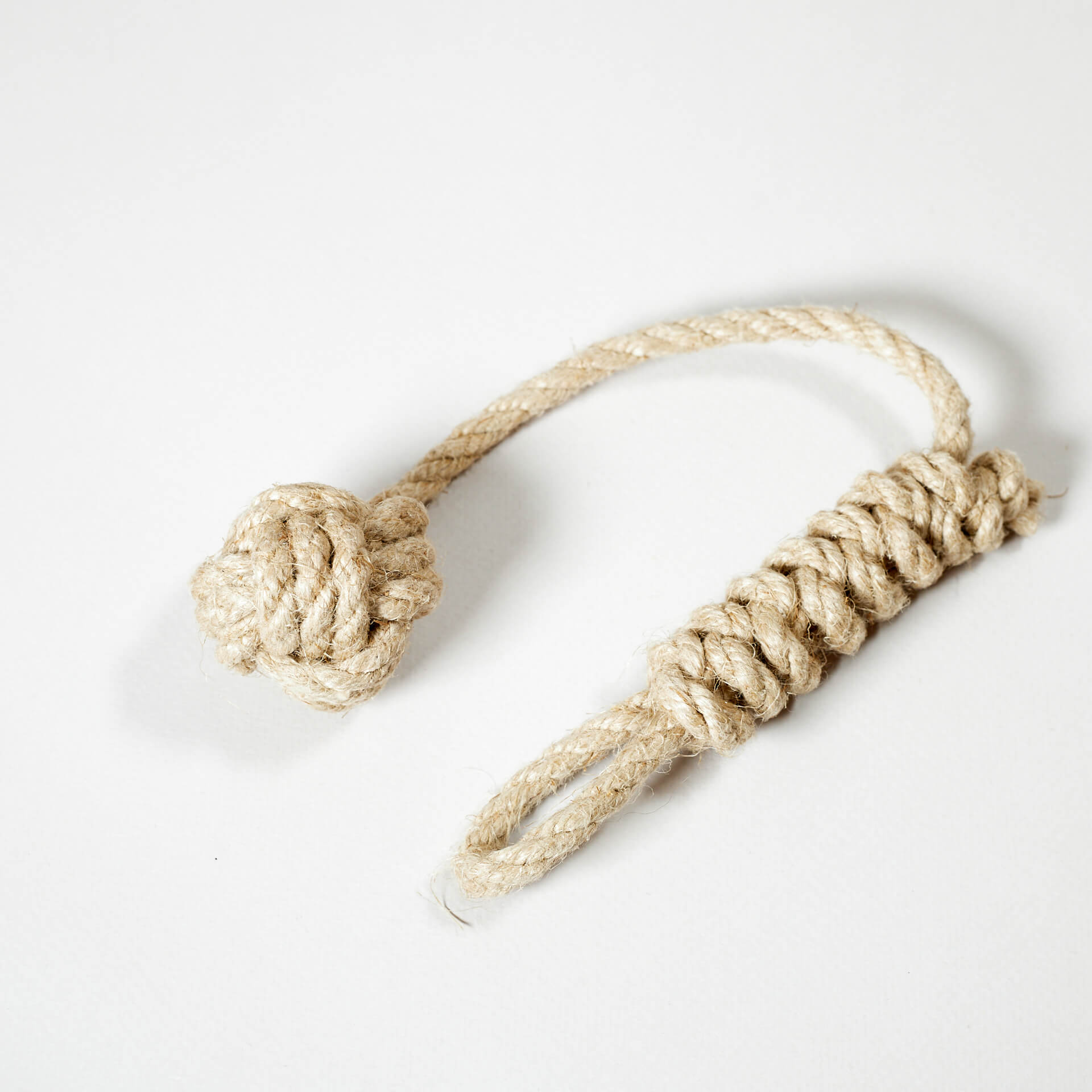 Mit dem Kauf unseres Hanfseil-Wurfball Small, entscheidest du dich für ein 100% recyclingfähiges Naturprodukt. Das Seil ist Qualitätsware aus deutscher Herstellung und hat einen Durchmesser von 8mm. Dieses wird von uns weiterverarbeitet und per Hand zum Wurfball geknüpft. Das Seil hat einen angenehmen Geruch, ähnlich dem von Heu. Dieser Geruch nimmt im Laufe der Zeit ab, ein gewisser Restgeruch bleibt für immer bestehen.